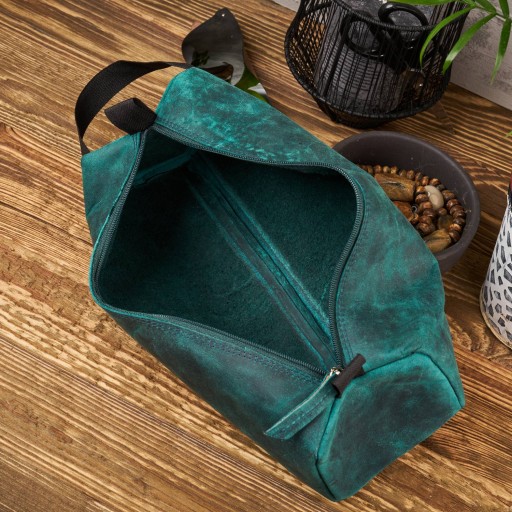 Zielona skórzana kosmetyczka damska w stylu retro skórzany piórnik