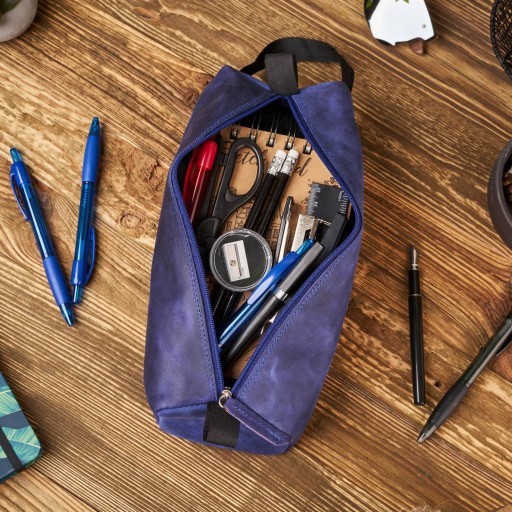 Uniwersalny skórzany piórnik granatowa kosmetyczka w stylu retro