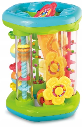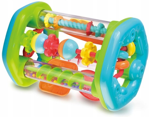 Roler będący jednocześnie sorterem to moc niespodzianek w jednej zabawce! Poprzez przekręcanie maluch wprowadza w ruch kolorowe kuleczki.