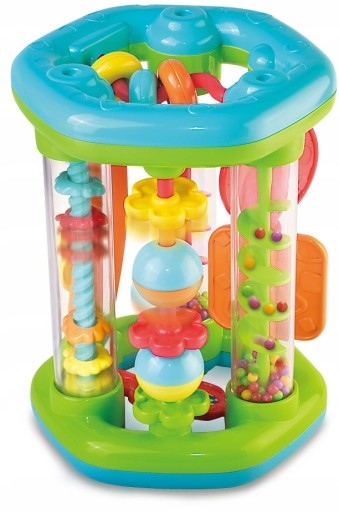Roler będący jednocześnie sorterem to moc niespodzianek w jednej zabawce! Poprzez przekręcanie maluch wprowadza w ruch kolorowe kuleczki. Przesypując się z góry na dół wydają dźwięki zachęcając pociechę do dalszej zabawy i odkrywania kolejnych ciekawostek! To połączenie klasycznej funkcji rozwijającego sortera z nową, znacznie bardziej interesującą formą.