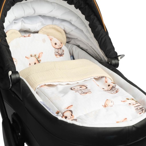 KOMPLET DO WÓZKA 2w1 - KOCYK KOŁDERKA PODUSZKA MIŚ MUŚLINOWY BAWEŁNA 100%