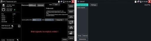 Tester ma możliwość zasilenia kamery z technologia PoE i dowolnie modyfikować ustawienia za pomocą wbudowanego portu RJ-45. Wystarczy podłączyć kamerę i cieszyć się obrazem na żywo w testerze. Dodatkowo tester został wyposażony w wyjście DC 12V/3A ,dzięki któremu możemy również testować kamery bez technologii PoE