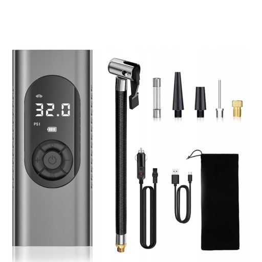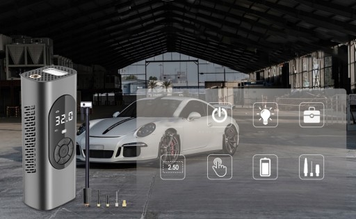 Pod wyświetlaczem LED znajdują się przyciski funkcji, które można dostosować według własnych potrzeb. Nie musisz się martwić o ciągłe spoglądanie na wyświetlacz - urządzenie automatycznie zatrzyma proces pompowania powietrza, gdy opona osiągnie idealny poziom ciśnienia. Widnieje na nim również stan baterii.