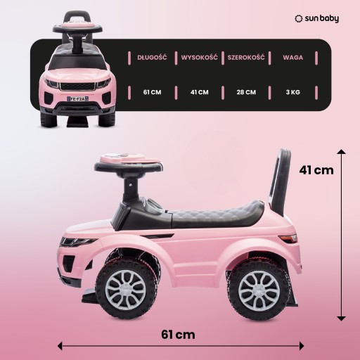 Jeździk dla dziecka na roczek jasny różowy Sun Baby⭐️⭐️⭐️⭐️⭐