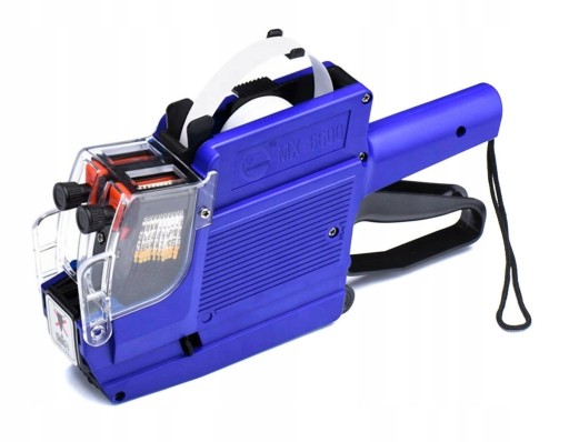 Metkownica dwurzędowa typu MX 6600. Umożliwia drukowanie dwóch rzędów metek jednocześnie. Każda z metek może posiadać dowolne cyfry (od 0 do 9) oraz cały rząd niezbędnych znaków specjalnych (rozmiarów, liter, oznaczeń walut). Wygodny, ergonomiczny uchwyt oraz dodatkowa smycz ułatwiają użytkowanie produktu. W komplecie dodatkowa wymienna gąbka o średnicy 18 mm oraz fabrycznie zaimplementowany zestaw metek.