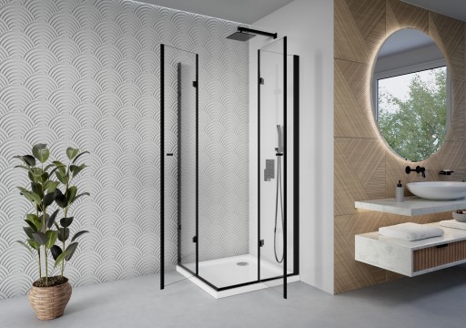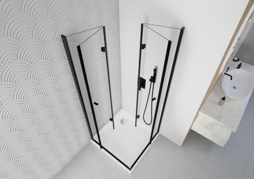 KABINA PRYSZNICOWA 90x90 SKŁADANA CZARNA DRZWI SZYBA ŚCIANKA SZKŁO 6MM ESG