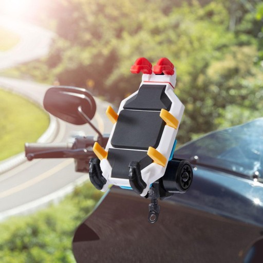 [Amortyzacja]: Uchwyt na telefon posiada funkcję amortyzacji, która skutecznie redukuje wibracje i uderzenia, zapewniając stabilność urządzenia nawet na nierównym terenie.