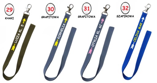 Smycz z nadrukiem imię, nazwisko, klasa - wiele kolorów do wyboru