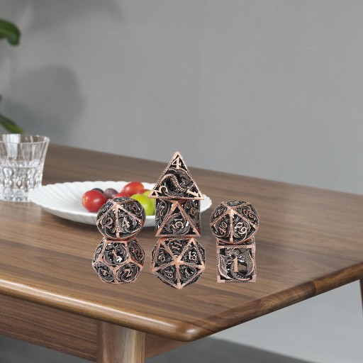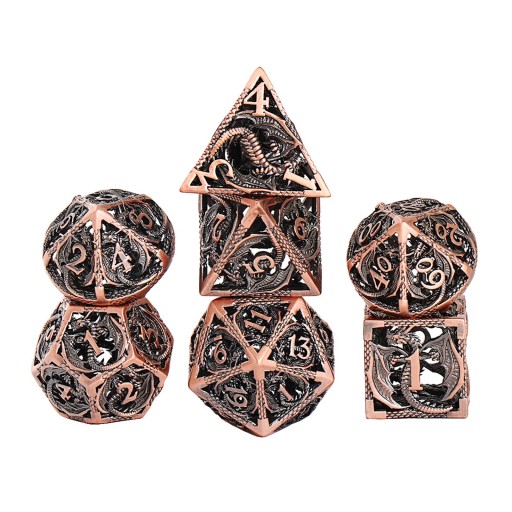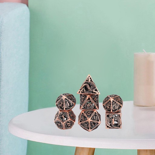7 sztuk Dragon Dungeon Hollow-rzeźbiona konstrukcja Metalowa kostka wielościenna Kolor blatu gry