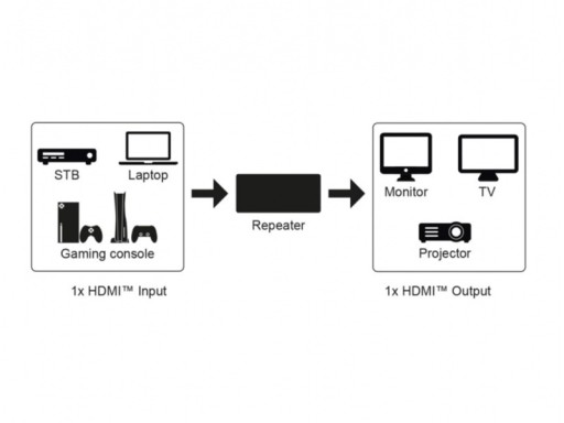- Wzmacniacz HDMI™ zwiększa poziom słabych sygnałów HDMI™ przy 4K @ 60 Hz na odległość do 20 m i przy 4K @ 30 Hz na odległość do ponad 25 m