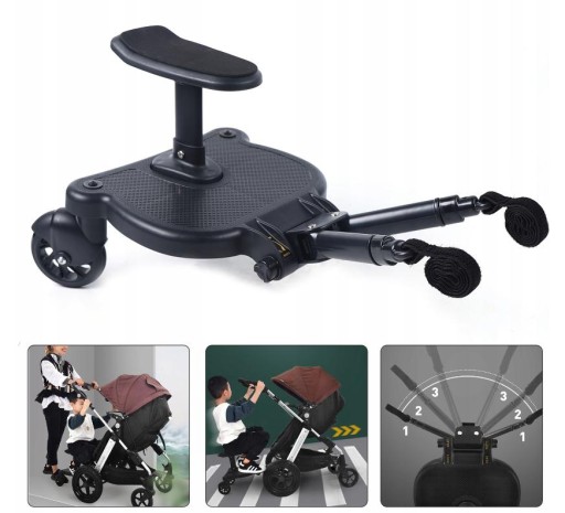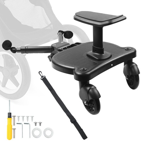 Dostawka do wózka jest wykonana z wytrzymałych materiałów, a jej maksymalne obciążenie wynosi 25 kilogramów. Montaż jest banalnie prosty i nie wymaga użycia żadnych narzędzi. Co więcej, dostawka pasuje do wózków od różnych producentów. A gdy maluch będzie chciał ponownie iść samodzielnie, dostawkę możesz zawiesić na wózku przy pomocy paska z zestawu