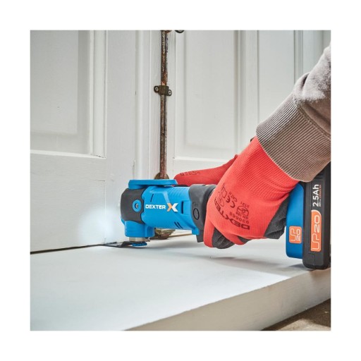 Bezprzewodowa szlifierka wielofunkcyjna DEXTER zasilana jest 20 V akumulatorami Li-ion (brak akumulatora w zestawie). Szlifierka posiada nowy system mocowania akcesoriów bez użycia narzędzi. Dla bezpieczeństwa użytkowania szlifierka została wyposażona w przycisk do blokowania podczas pracy co zapobiega przypadkowemu uruchomieniu. Dla większego komfortu narzędzia wielofunkcyjnego DEXTER wyposażono w dodatkową rękojeść. Bezprzewodowe narzędzie wielofunkcyjne z akumulatorem litowym, sprawdzi się idealnie przy różnych drobnych pracach, takich jak szlifowanie czy cięcie.
