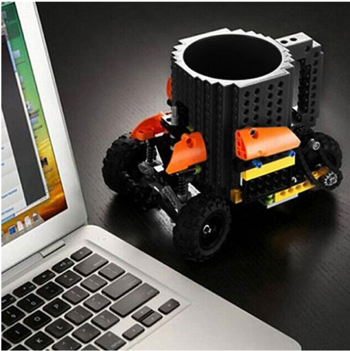 kubek klockowy można na nim przyczepiać i kreować różności z klocków lego, kompatybilny z innymi klockami typu lego, prezent dla dzieci