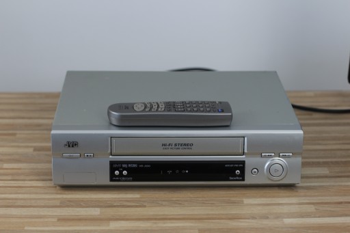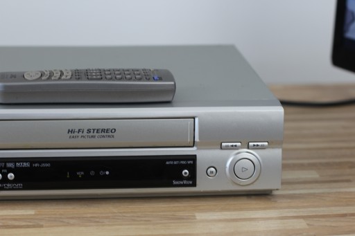 Magnetowid JVC HR-J590 . Magnetowid w pełni sprawny , mechanizmy działają płynnie . Bardzo wyrazisty obraz . Górna obudowa z delikatnymi rysami ( zdjęcie) . Magnetowid nie otwierany czy naprawiany . W zestawie pilot oraz kabel Euro .