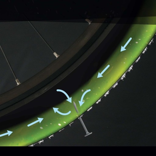 ✅Gdy dojdzie do przebicia, opatentowany uszczelniacz Slime jest transportowany bezpośrednio do źródła. Ciśnienie uciekającego powietrza wtłacza cząsteczki do otworu, gdzie gromadzą się i splatają, tworząc trwały, elastyczny korek.