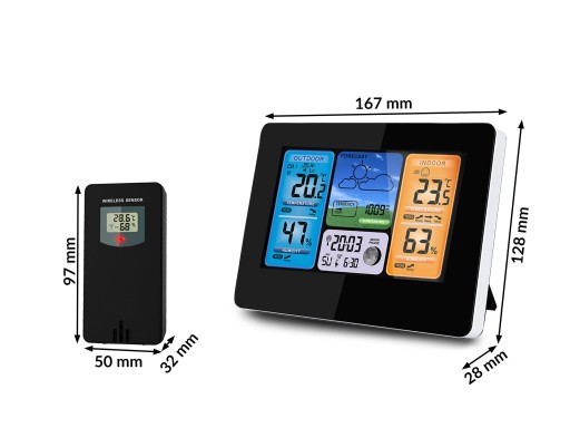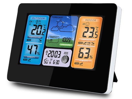 - Stacja pogodowa ze wbudowanym higrometrem pozwala kontrolować i utrzymywać odpowiedni mikroklimat w pomieszczeniach.