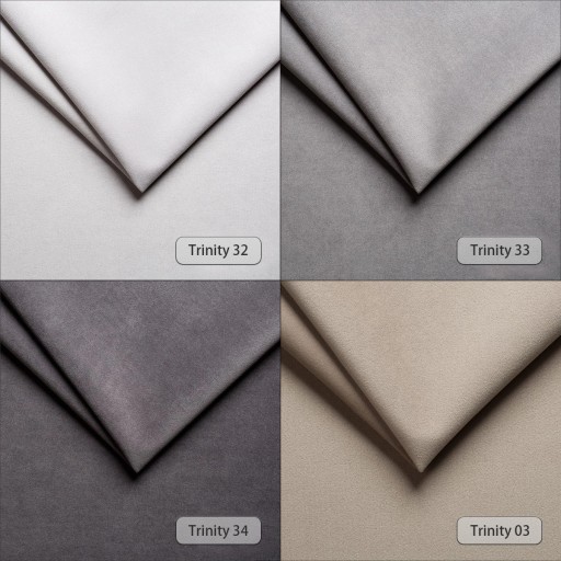 Tkanina Welur Trinity to wyjątkowo miły w dotyku materiał, który charakteryzuje się jednorodną i gładką powierzchnią. Pomimo delikatnego wyglądu, cechuje się imponującą wytrzymałością. Na szczególną uwagę zasługuje wysoka odporność na ścieranie, pilling, działanie promieni słonecznych oraz ograniczone wchłanianie płynów i eleganckie matowe wykończenie. Dodatkowo, tkanina została wyposażona w hydrofobową powłokę, która chroni ją przed rozlanymi płynami i ułatwia czyszczenie. Szeroka gama kolorystyczna z pewnością pozwoli na wybór odpowiedniego koloru, pasującego do Twojego wnętrza.