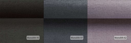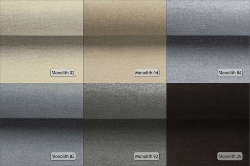 Tkanina Monolith to welurowa tkanina tapicerska z delikatnym, melanżowym wzorem. Jest niezwykle miękka, aksamitna i mięsista, a także plastyczna. Tkanina ta cechuje się unikalną właściwością zmiany wyglądu pod wpływem dotyku – pięknie odbija światło zależnie od ułożenia.