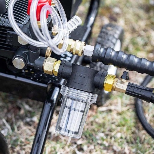 🌊Wymiana filtra wody — łatwa instalacja: Podłącz jeden koniec filtra wody z węża ogrodowego do wlotu wody myjki ciśnieniowej lub kranu zewnętrznego. Podłącz wąż ogrodowy do drugiej strony złączki.