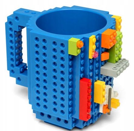 kubek klockowy można na nim przyczepiać i kreować różności z klocków lego, kompatybilny z innymi klockami typu lego, prezent dla dzieci
