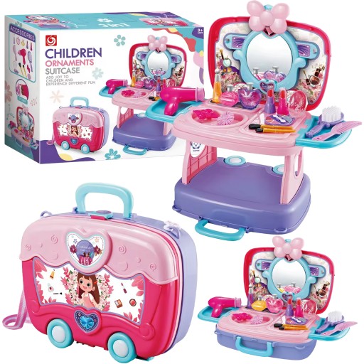 TOALETKA ZESTAW SALON PIĘKNOŚCI URODY WALIZKA 3W1 DLA DZIEWCZYNKI Z LUSTREM