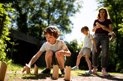Fińskie kręgle to gra rozwijająca precyzję, w którą się gra w 2 osoby lub w 2 ekipy. Wytycz linię rzutu w odległości 4 metrów od kręgli i rzucaj w nie zbijakiem. Aby wygrać partię, należy zdobyć DOKŁADNIE 50 punktów.