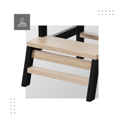 - Podest z drewna sosnowego jest naturalnie antypoślizgowy, dzięki czemu dziecko przez przeszkód może uczestniczyć w każdej aktywności.