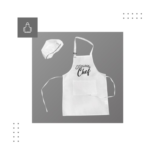 - Zestaw małego mistrza kuchni: pomocnik kuchenny, fartuszek i czapka kucharska
