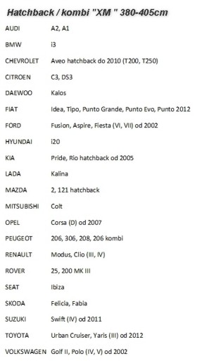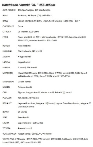 Marka, Model, Rocznik, rodzaj nadwozia samochodu.