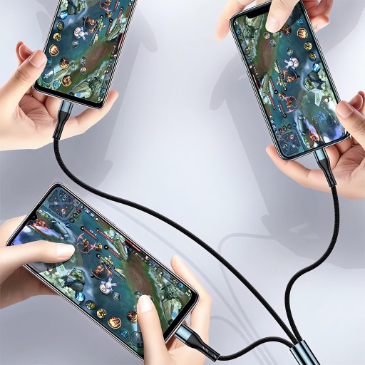 Całkowita długość kabla to 120cm. Maksymalny prąd podczas ładowania napięciem 5V wynosi 2A. Trzy końcówki pozwalają na ładowanie kilku urządzeń jednocześnie. Jest to idealne rozwiązanie np.
