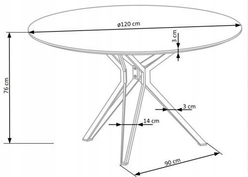 - Wykonany z płyty MDF okleinowanej w kolorze dąb złoty. Blat okrągły o średnicy 120 cm.