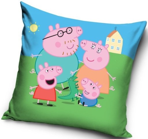 Poszewka o aplikacji przedstawiającej uroczą Świnkę Peppę przypadnie każdemu do gustu.