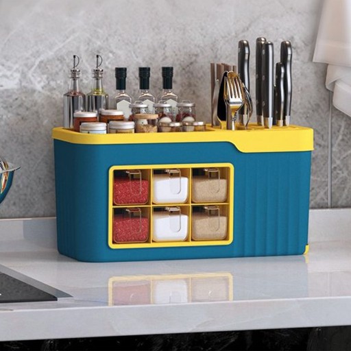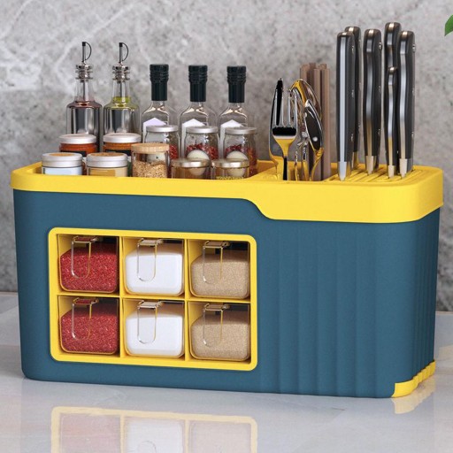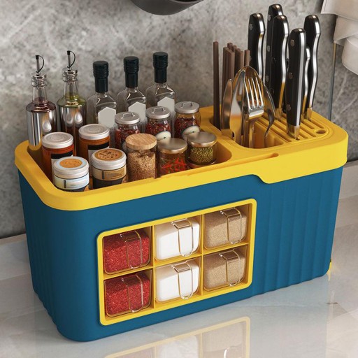 Wielofunkcyjny pojemnik na przyprawy Pudełko do przechowywania butelek na przyprawy Plastikowy organizer na przyprawy oszczędzający miejsce na noże Naczynia Słoiki na przyprawy