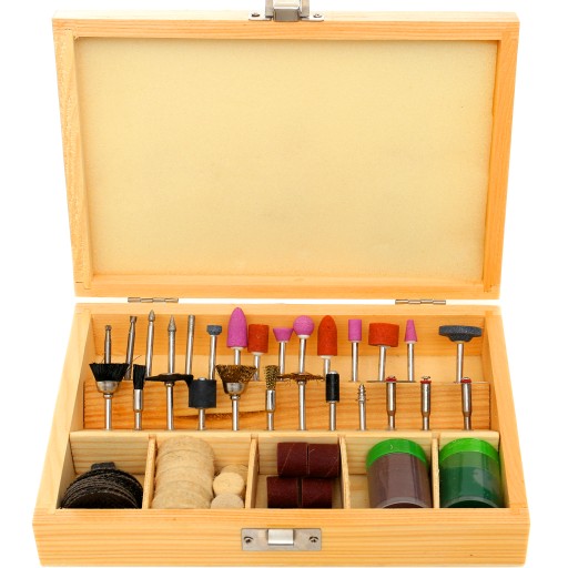 АКСЕССУАРЫ для МИНИ-Шлифмашины набор 100 шт. в деревянном футляре КД10265