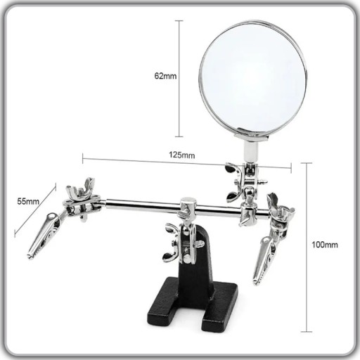 НАБОР ДЛЯ ПАЙКИ С УВЕЛИЧЕНИЕМ, РУЧКА ТРЕТЬЕГО РУКА, ЗАЖИМЫ «КРОКОДИЛ», 60 ММ