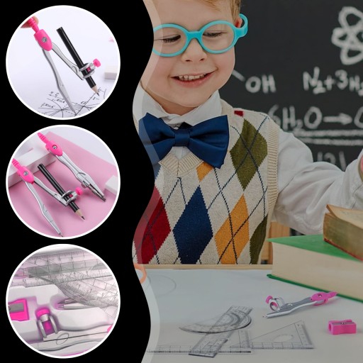✔️Precyzyjne Narzędzia✔️W skład zestawu wchodzi cyrkiel z uniwersalnym uchwytem oraz cyrkiel z grafitową końcówką, które zapewniają dokładne rysowanie okręgów i łuków. Ekierki i kątomierz umożliwiają precyzyjne pomiary i rysowanie kątów, co jest nieocenione podczas rysowania skomplikowanych kształtów geometrycznych.