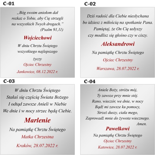 - Można podać własną treść dedykacji - w takim przypadku prosimy o przesłanie pełnej treści, którą umieścimy na grawerze.