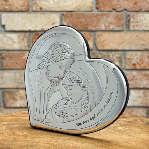 Obrazek z wizerunkiem Świętej Rodziny to doskonały prezent na Ślub, Rocznicę Ślubu, Jubileusz. Wysoka jakość wykonania, gustowne wykończenie, eleganckie opakowanie - to wszystko tworzy unikalną pamiątkę na długie lata... Obrazek jest także niezwykle praktyczny: posiada wkładaną podpórkę, dzięki czemu możemy ustawić go na szafce lub komodzie jak również powiesić na ścianie.