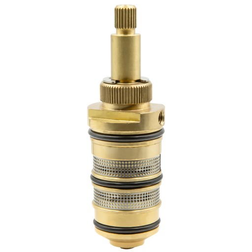Po zamontowaniu głowicy termostatycznej zalecanym jest wykonanie kalibracji. Działanie to ma na celu ustawienie temperatury w taki sposób aby faktyczna temperatura wody była zgodna z podziałką, która jest widoczna na korpusie urządzenia. Po włożeniu głowicy w gniazdo i zamocowaniu jej śrubą kontrującą należy regulować, zmniejszając lub zwiększając temperaturę do momentu uzyskania 38ºC. Następnie wystarczy założyć pokrętło tak aby znacznik pokrętła wskazywał 38ºC na podziałce temperatury.