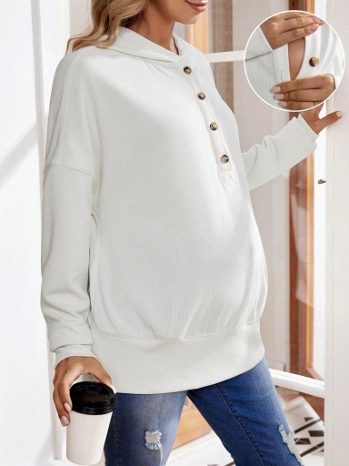 КРЕМОВАЯ Кофта для беременных, РЕБРИЦА, SHEIN BUTTONS 40/42