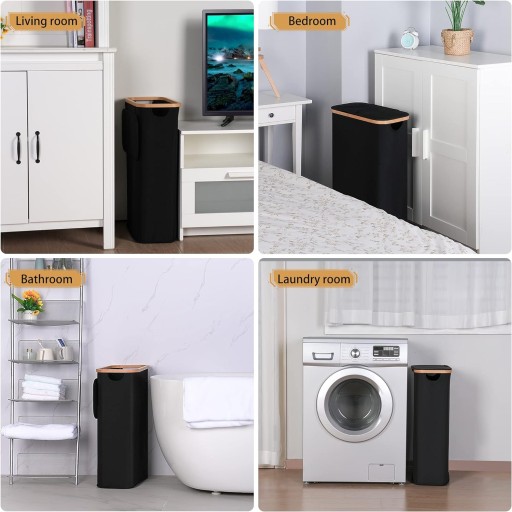 ① Kosz na pranie, kosz na pranie 60 l, z pokrywką i uchwytem, wąski, składany kosz na pranie ze zdejmowaną i nadającą się do prania torbą wewnętrzną, kosze na pranie do sypialni, łazienki, pralni (czarny)