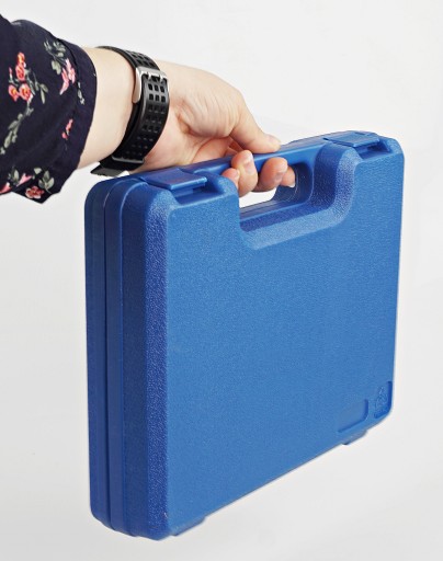 - Plastikowa skrzynka zabezpiecza przed uszkodzeniem praski oraz matryc.
