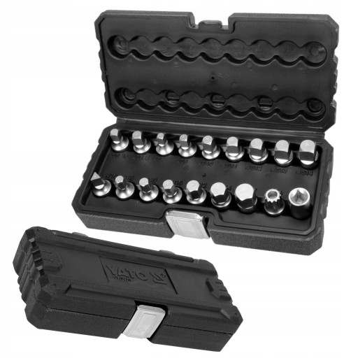 Klucze do korków oleju Yato YT-05991 składa się z 18 nasadek do zakręcania i odkręcania korków spustowych. Wykonanie z wytrzymałej stali chromowo-wanadowej sprawia, że elementy są długo żywotne. W zestawie znajdują się nasadki kwadratowe, trójkątne, 12-kątne i HEX w różnych rozmiarach. Całość w wygodnej walizce usprawniającej transport.