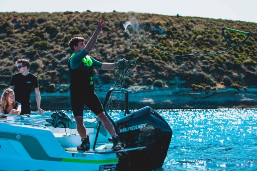 KOMPLET DESKA WAKEBOARD + WIĄZANIA (BUTY) MOCOWANE DO DESKI MAZE + LINA DO HOLOWANIA