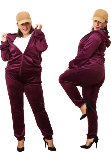 ЖЕНСКИЙ ВЕЛЮРОВЫЙ СПОРТИВНЫЙ КОМПЛЕКТ СВИТШОТ С КАПЮШОНОМ, РАЗМЕР ПЛЮС XXL