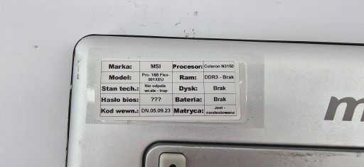 PC Pro MSI 16B Flex-001XEU Intel Celeron DDR3 ОТСУТСТВУЮЩИЕ ЧАСТИ ДОНОР