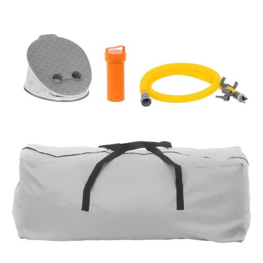 - - Akcesoria - 2 wiosła, pompka, zestaw naprawczy, smycz, 2 liny zabezpieczające, zawór spustowy, 2 aluminiowe deski do siedzenia, torba transportowa