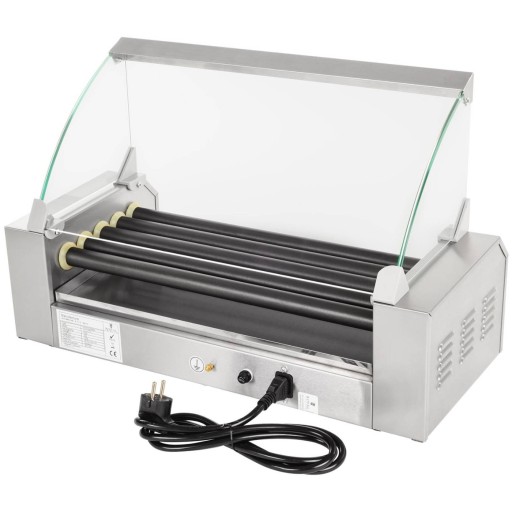 Moc urządzenia wynosi 1000W, co zapewnia jego szybkie nagrzewanie. Rolki (5 sztuk) pokryte zostały teflonem. Obracają się o 360°, dzięki czemu leżące pomiędzy nimi kiełbaski podgrzewają się równomiernie. Temperaturę płynnie reguluje się do 250°C. Kiełbaski za każdym razem są równomiernie zarumienione i wyglądają apetycznie!