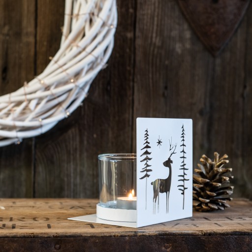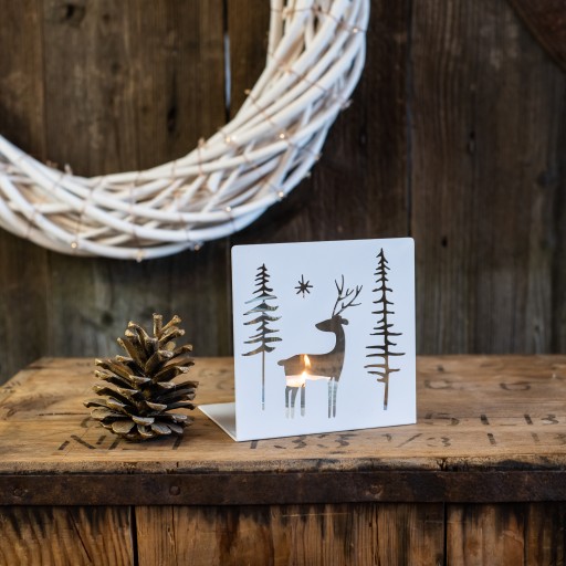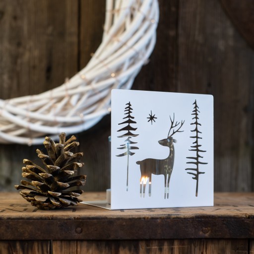 LAMPION LATARNIA RENIFER PODSTAWKA DOMEK NA ŚWIECE LED BIAŁA LOFT METAL