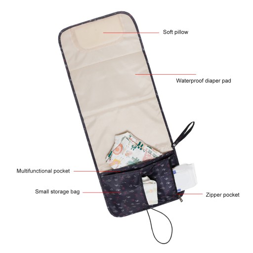 1. Wodoodporna przenośna: ta podkładka do przewijania, którą można wygodnie złożyć do niewielkich rozmiarów, jest idealna w podróży, wykonana z wodoodpornego nylonu, zapewnia czyste i bezpieczne powierzchnie.